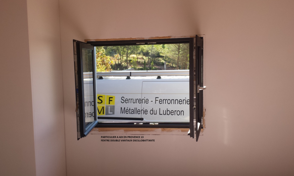 Menuiserie métallique chez un particulier à Aix-en-Provence (13). Réalisation d’une fenêtre double vantaux oscillobattante.
